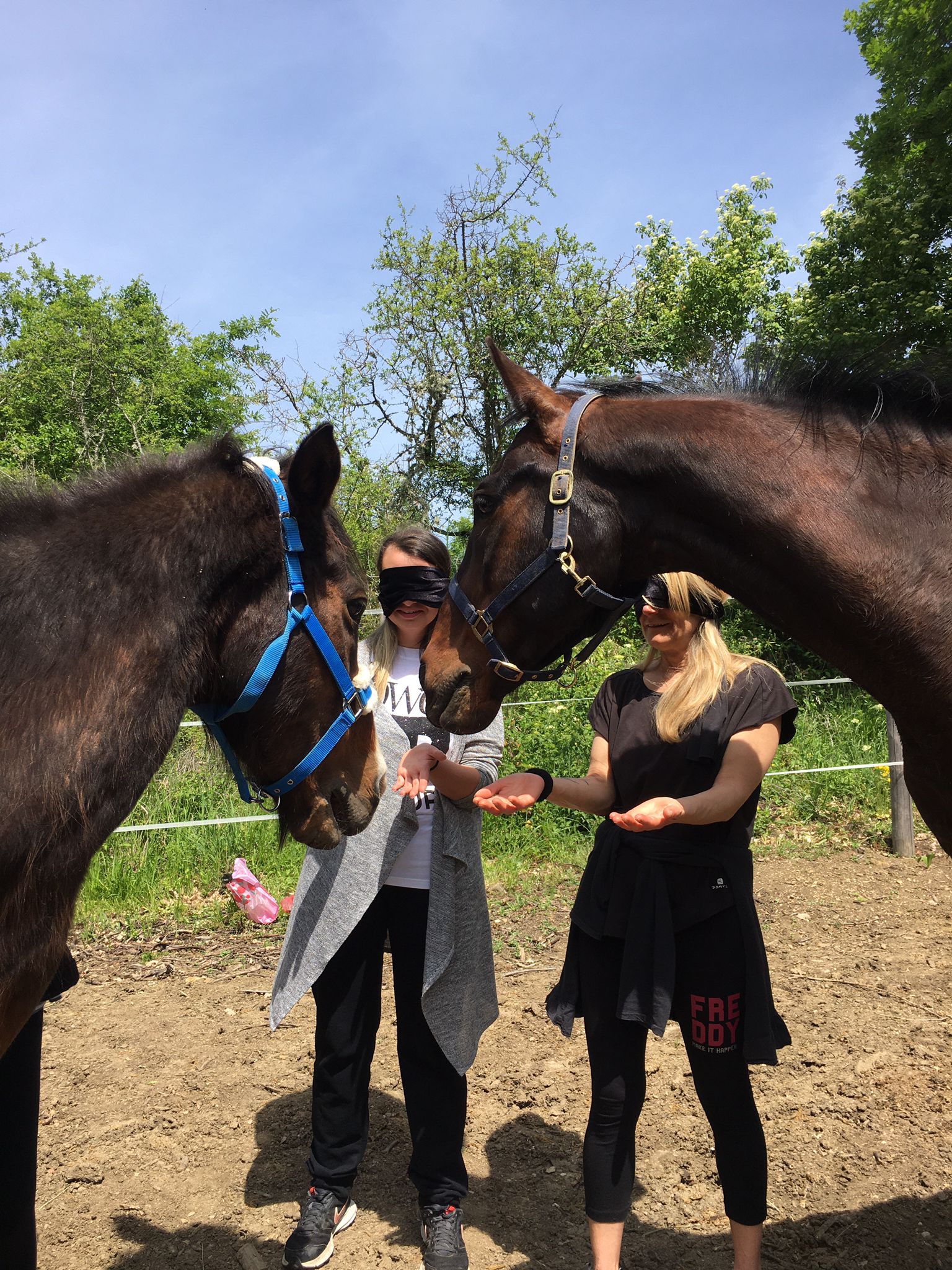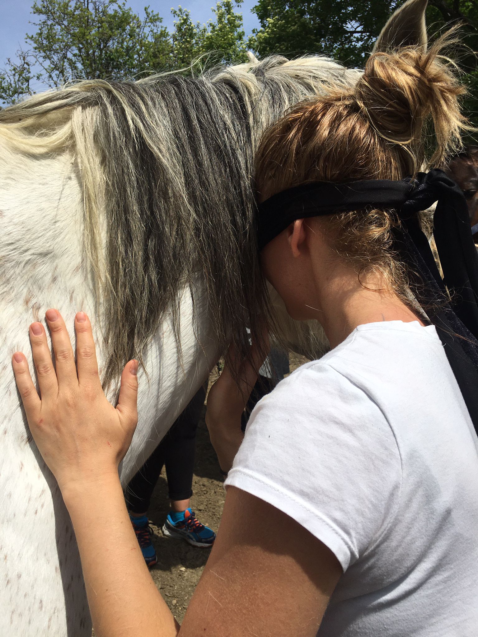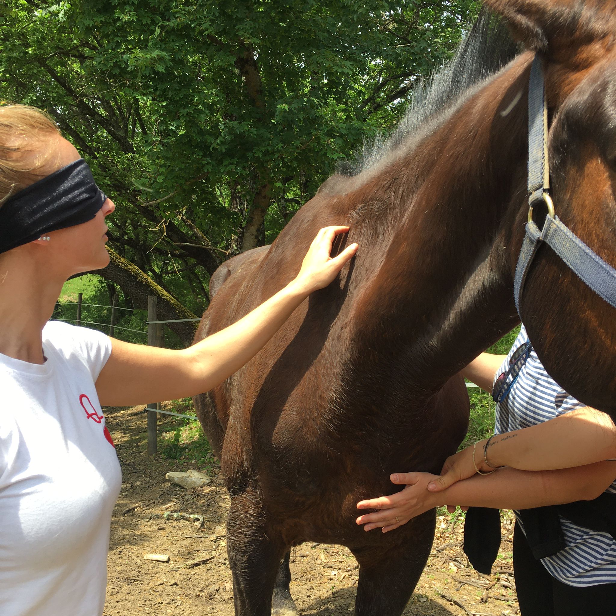 Ad ogni incontro c’è una fase pre/contatto e pre/bendaggio che ci consente di entrare in avvicinamento con il cavallo in maniera più aperta possibile per consentire una connessione ed uno scambio che va al di là della “sola” fascinazione e potenza del contatto, di per sé di grande valore,ma che possa portare degli strumenti e visioni di vita per ogni persona.